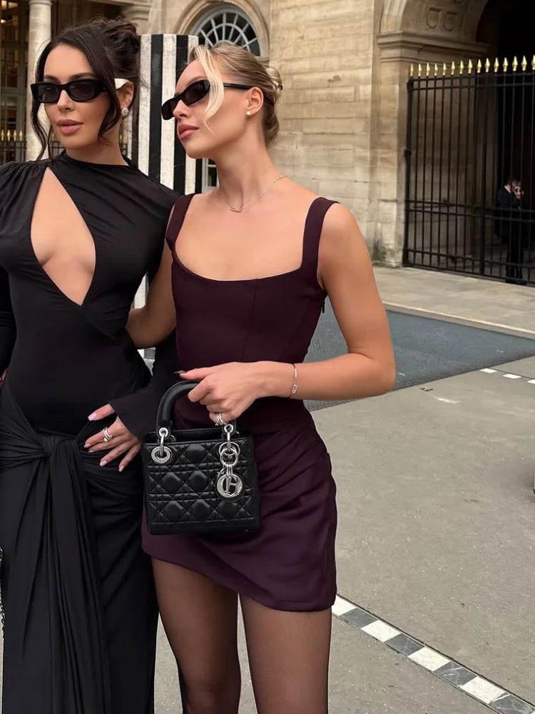 Model Number: Solid Low V-neck Ruffle Sling Dress